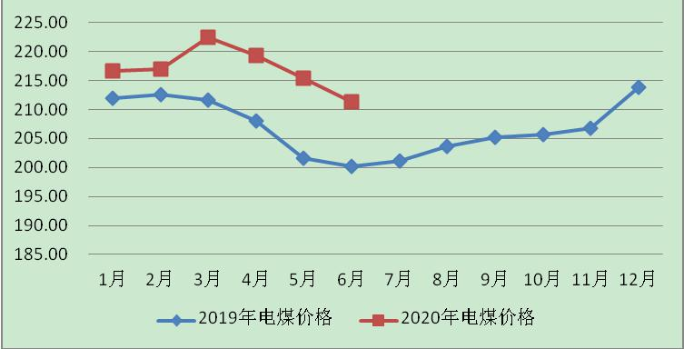 2020年上半年,受新冠肺炎疫情影响,煤炭市场供需错配,价格呈现“N”字型走势,综合价格水平整体高于2019年同期。下半年,煤炭市场需求向好、供应偏紧、进口减少,预计价格将呈稳中有涨走势。