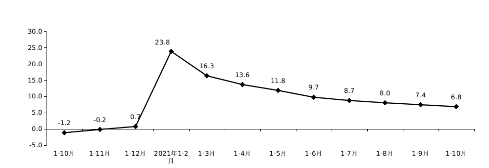 2021年1—10月,全区规模以上工业增加值同比增长6.8%,比2019年1—10月增长5.5%,两年平均增长2.7%。其中,10月增长1.8%。