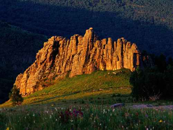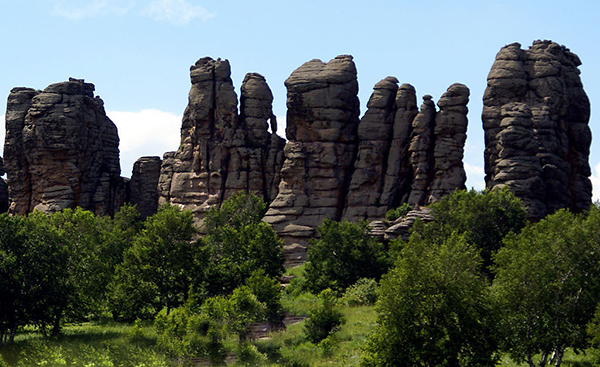 立石林之巅,极目远望,重峦叠翠,碧野无垠。山间茂密的原始白桦林枝繁叶茂,常有獐鹿出没,百鸟啼鸣;草地野花争奇斗艳,蝶舞蜂飞。
