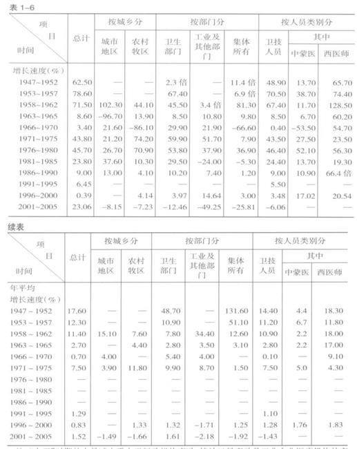 注:“十五”时期的人员减少系由于行政机构变动、统计口径变动及工业企业医疗机构的变动所致。