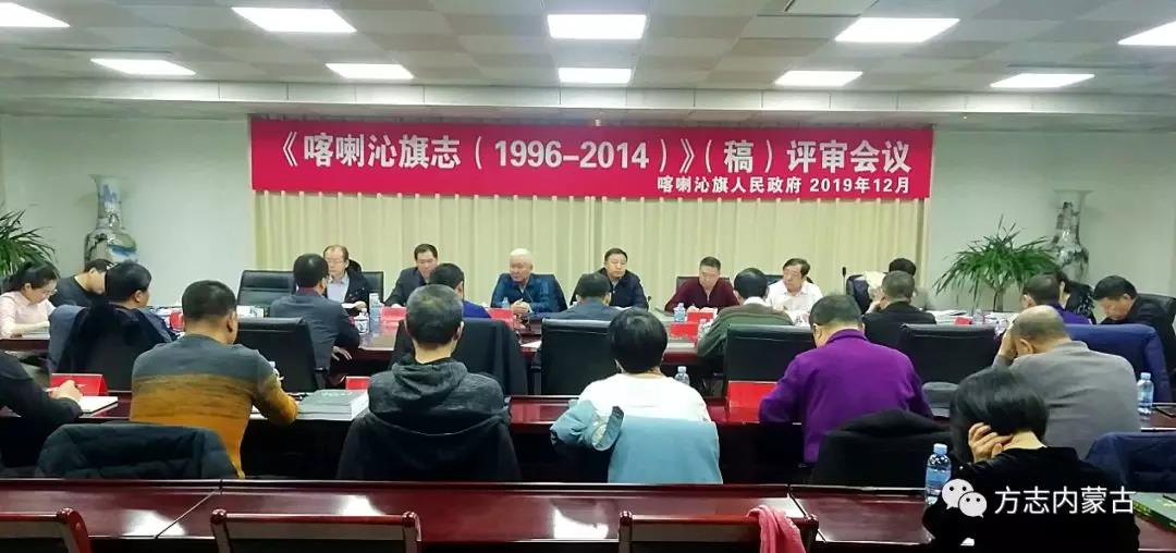 2019年12月26日,《喀喇沁旗志(1996—2014年)》(稿)(以下简称《喀喇沁旗志》)评审会在喀喇沁旗锦山镇召开。喀喇沁旗常务副旗长张文泽致欢迎辞,自治区地方志办公室副主任查干浪涛及赤峰市政府副秘书长鞠文林分别讲话,自治区地方志办公室“三全目标”第四、五攻坚组,赤峰市及各旗县区地方志工作机构负责人、主编,喀喇沁旗政府办及地方志办公室全体人员,共31人参加评审会议。赤峰市地方志办公室主任袁洪军主持会议。