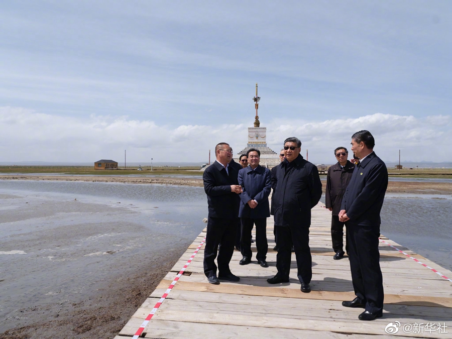 8日下午,习近平总书记来到青海湖仙女湾,实地察看青海湖环境综合治理、生物多样性保护工作成效。他指出,我之前去看了三江源、祁连山,这一次专门来看看青海湖。青海在生态文明方面的战略位置非常重要,分量很重。要把青海生态文明建设好、生态资源保护好,把国家生态战略落实好、国家公园建设好。生态是资源和财富,是我们的宝藏。(文字记者:张晓松、朱基钗;摄影记者:李学仁、谢环驰、申宏)