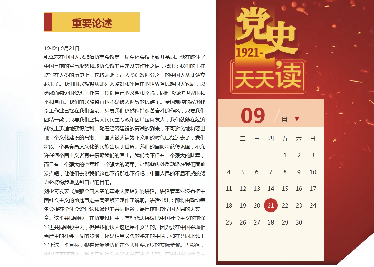 “党史天天读”栏目结合大量历史文献和当代文献资料,以日志的形式全面回顾党的历史。