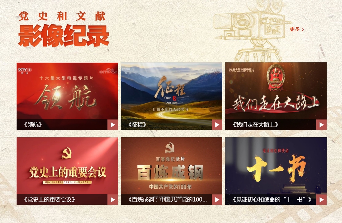 “党史和文献影像纪录”栏目发布《领航》《征程》《党史上的重要会议》等多部我院参与制作的影像纪录片。