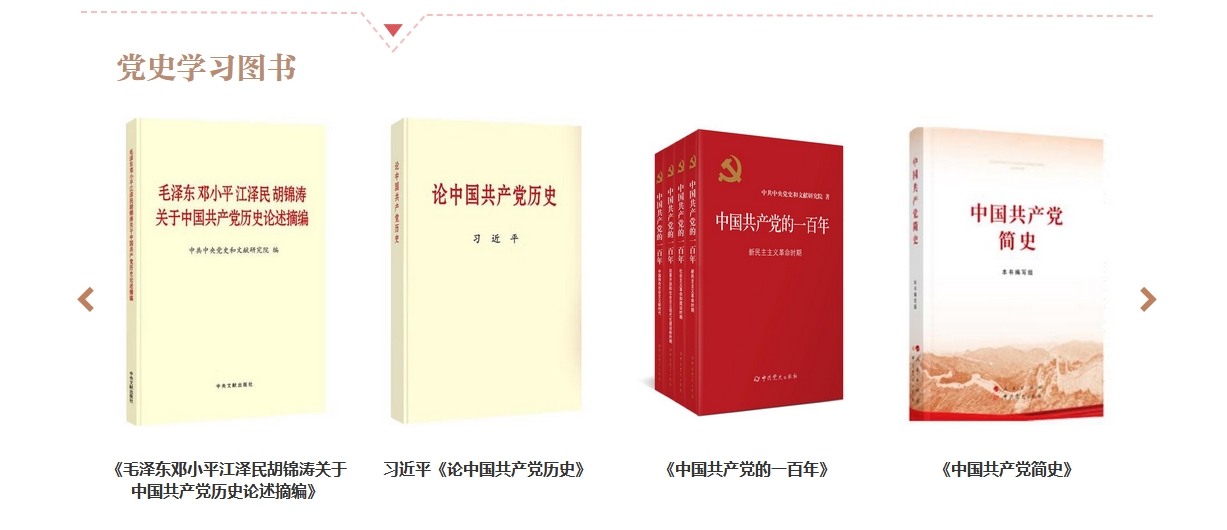 “党史学习图书”栏目对多种权威党史基本著作进行介绍和推荐。