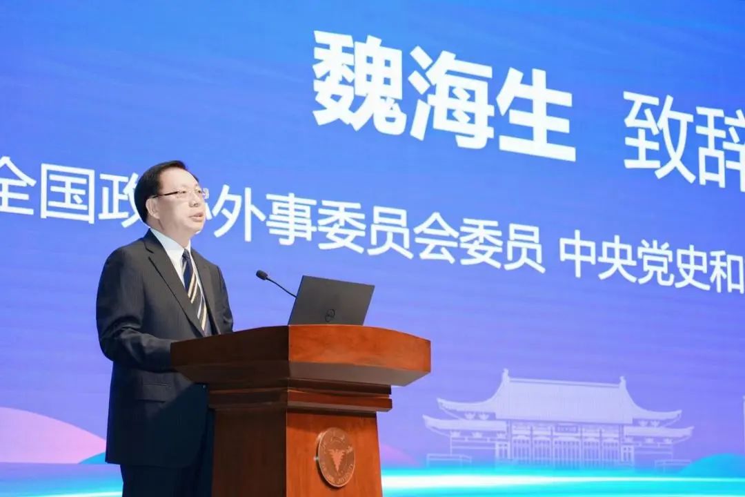 论坛开幕式上,魏海生、朱锐、何莲珍与中宣部对外推广局副局长夏云海、中央党史和文献研究院对外合作交流局局长杨明伟、中联部《当代世界》杂志社社长兼总编辑吕学军、中央编译出版社社长兼总编辑郗卫东、外交部政策规划司参赞郑振华、中国人民对外友好协会民间外交战略研究中心主任邓岚、浙江省委党史和文献研究室副主任许柏海、中央党史和文献研究院科研规划部代表张长江等为浙江大学在校留学生代表赠送了《习近平外交演讲集》第一卷、第二卷英文版,并共同为“党的历史和理论对外传播研究基地”揭牌。中国新闻社、中国人民大学新闻学院、复旦大学新闻学院、浙江大学传媒与国际文化学院、华中科技大学新闻与信息传播学院、中国传媒大学人类命运共同体研究院等媒体和高校代表,以及相关省市兵团党史文献部门负责人出席论坛。