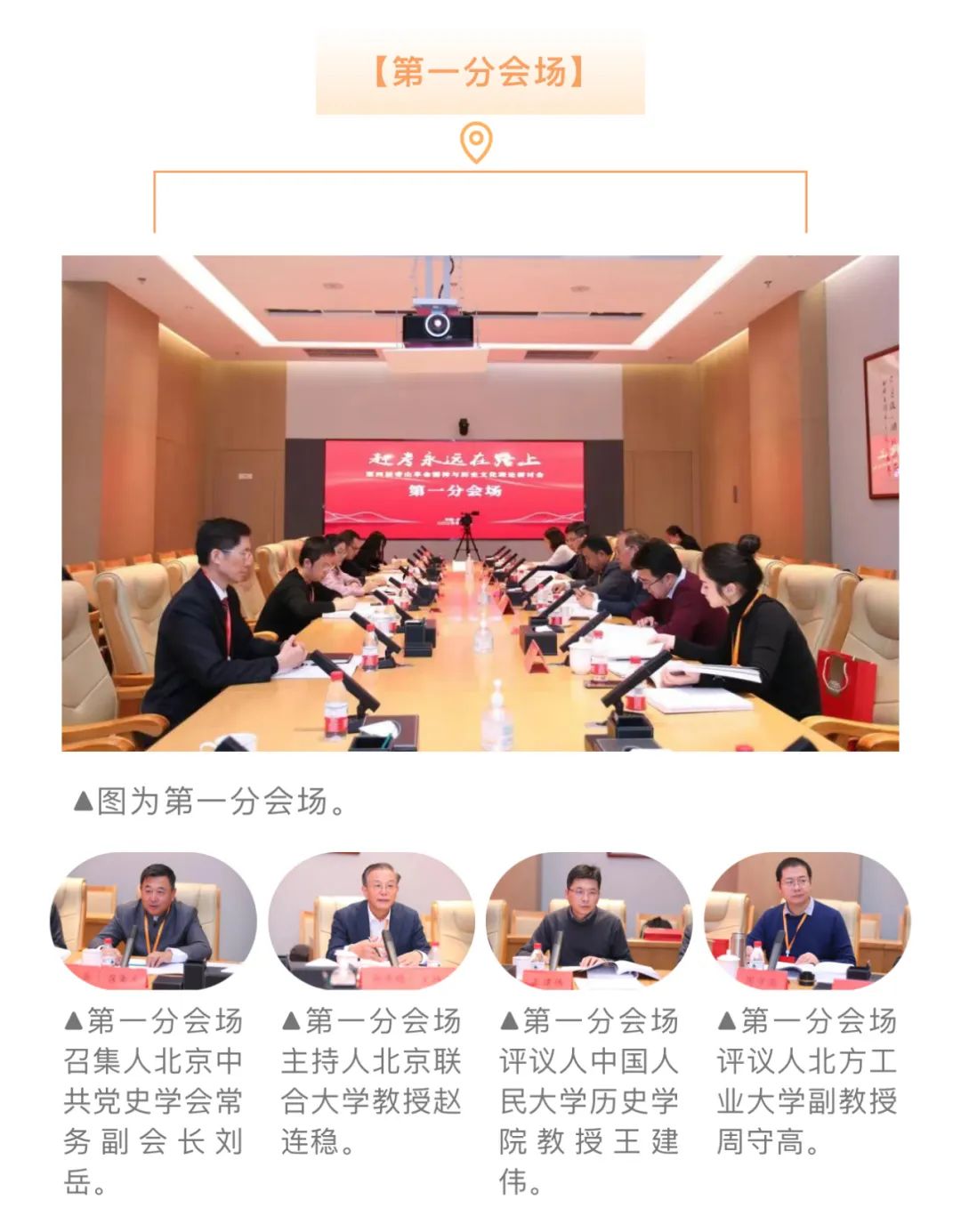 主会场代表发言由清华大学马克思主义学院院长朱安东主持。中国政协文史馆三级职员李红梅,西柏坡纪念馆党委书记、馆长卢润彩,首都博物馆副馆长徐中煜,北京中共党史学会常务副会长刘岳,香山革命纪念馆馆长容晶分别以《毛泽东在香山开展民主协商的重要意义》《三个务必与新时代的赶考之路》《“进京赶考”第一站的重要启示》《从党章历程简析勇于自我革命是党最鲜明的品格》《永葆青春活力——香山时期中国共产党自我革命实践及经验启示》为题作了精彩发言。