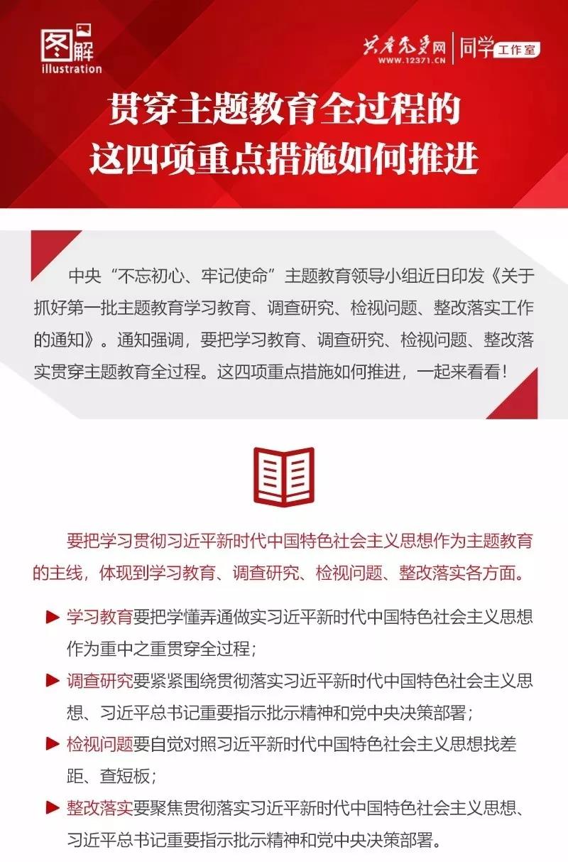 党中央“不忘初心、牢记使命”主题教育领导小组近日印发《关于抓好第一批主题教育学习教育、调查研究、检视问题、整改落实工作的通知》。通知强调,要把学习教育、调查研究、检视问题、整改落实贯穿主题教育全过程。这四项重点措施如何推进,一起来看看!