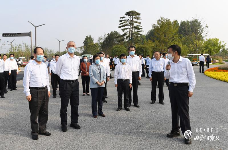 9月26日,自治区党政代表团在北京对接扶贫协作并学习考察。中共中央政治局委员、北京市委书记蔡奇,北京市委副书记、市长陈吉宁,同自治区党委书记、人大常委会主任石泰峰,自治区党委副书记、自治区主席布小林,考察北京城市绿心森林公园。内蒙古日报社融媒体记者 袁永红 摄
