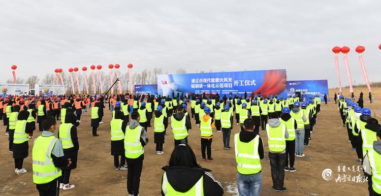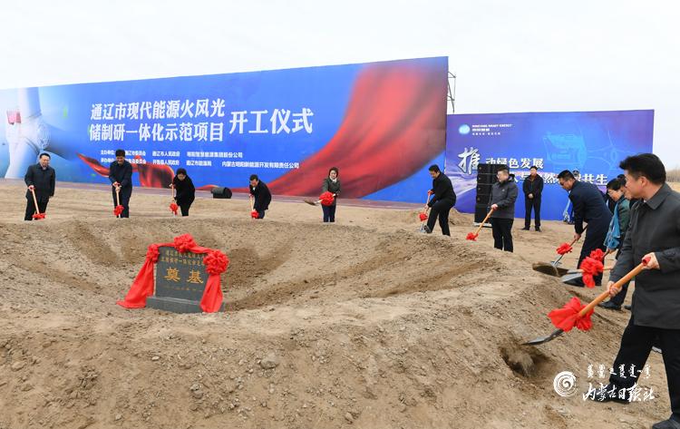本网讯(内蒙古日报社融媒体记者戴宏)11月9日上午,通辽市现代能源“火风光储制研”一体化示范项目在通辽市开鲁县东风镇开工建设。