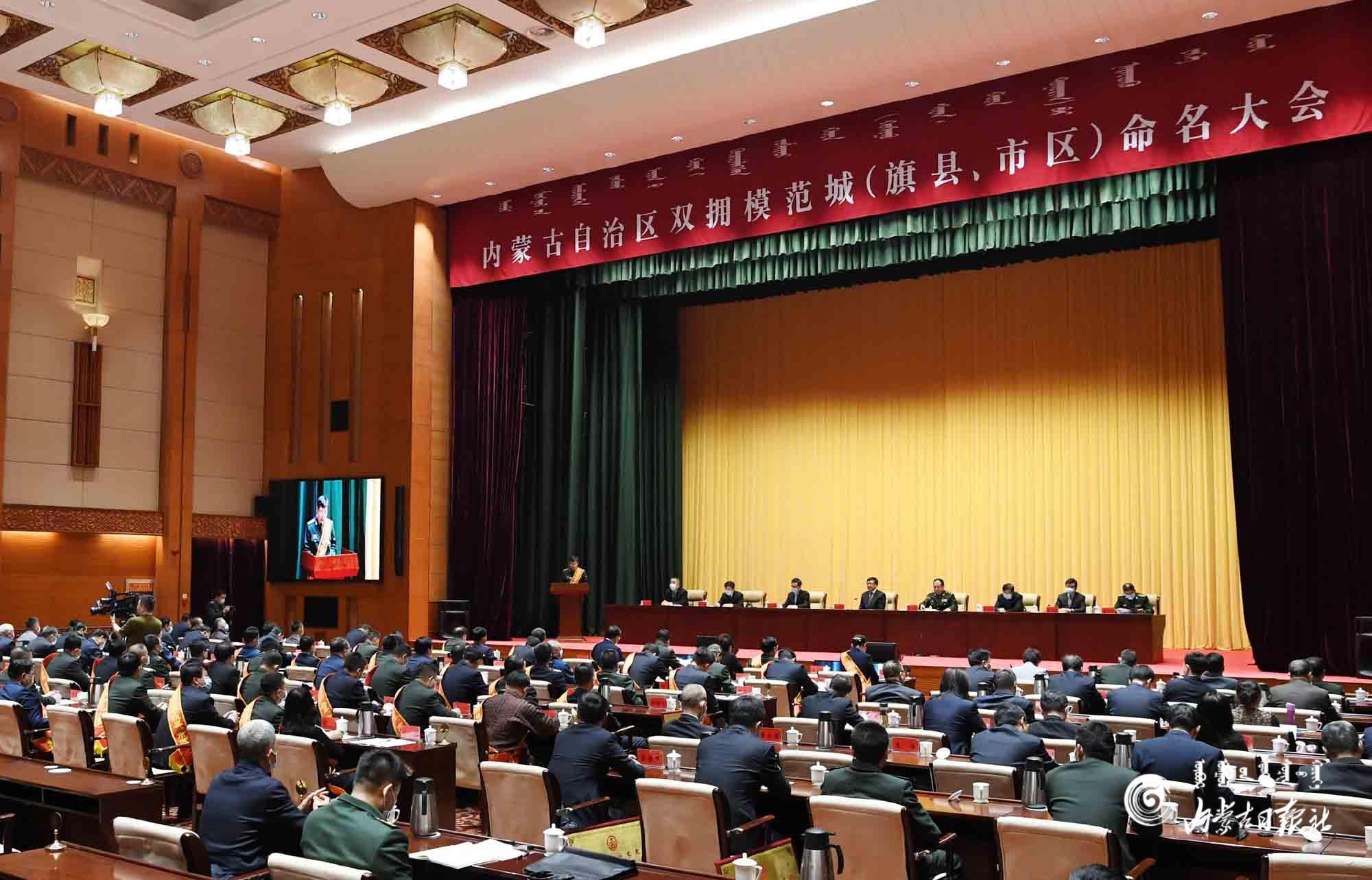 会上,宣读了《中共中共内蒙古自治区委党史和地方志研究室网站委员会、内蒙古自治区人民政府、内蒙古军区关于命名自治区双拥模范城(旗县、市区)的决定》。命名表彰了呼和浩特市、包头市等67个自治区双拥模范城(旗县、市区)。