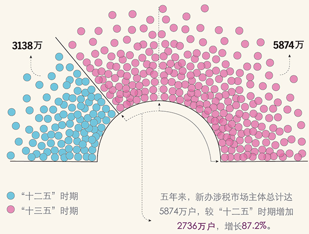 “十三五”时期新办涉税市场主体累计缴纳税收超过7.8万亿元相当于“十三五”较“十二五”时期税收增量的42%。