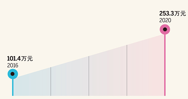 十三五”时期新办涉税市场主体不断成长,经营规模持续扩大。户均销售收入在2016年到2020年间的年均增速高达25.6%。