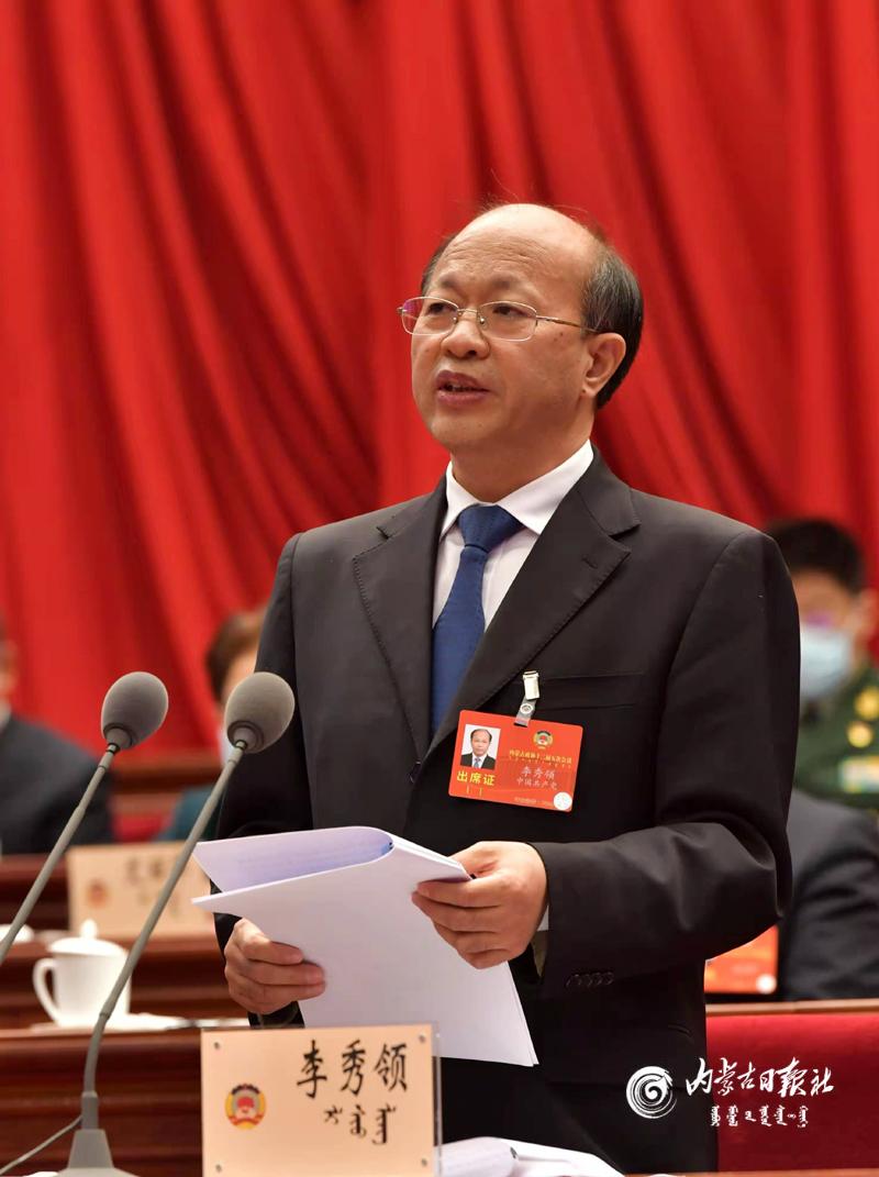 自治区政协主席李秀领主持闭幕大会并讲话。自治区政协副主席罗志虎、郑福田、刘新乐、马学军、张华、其其格、魏国楠、安润生及秘书长狄瑞明在主席台前排就座。