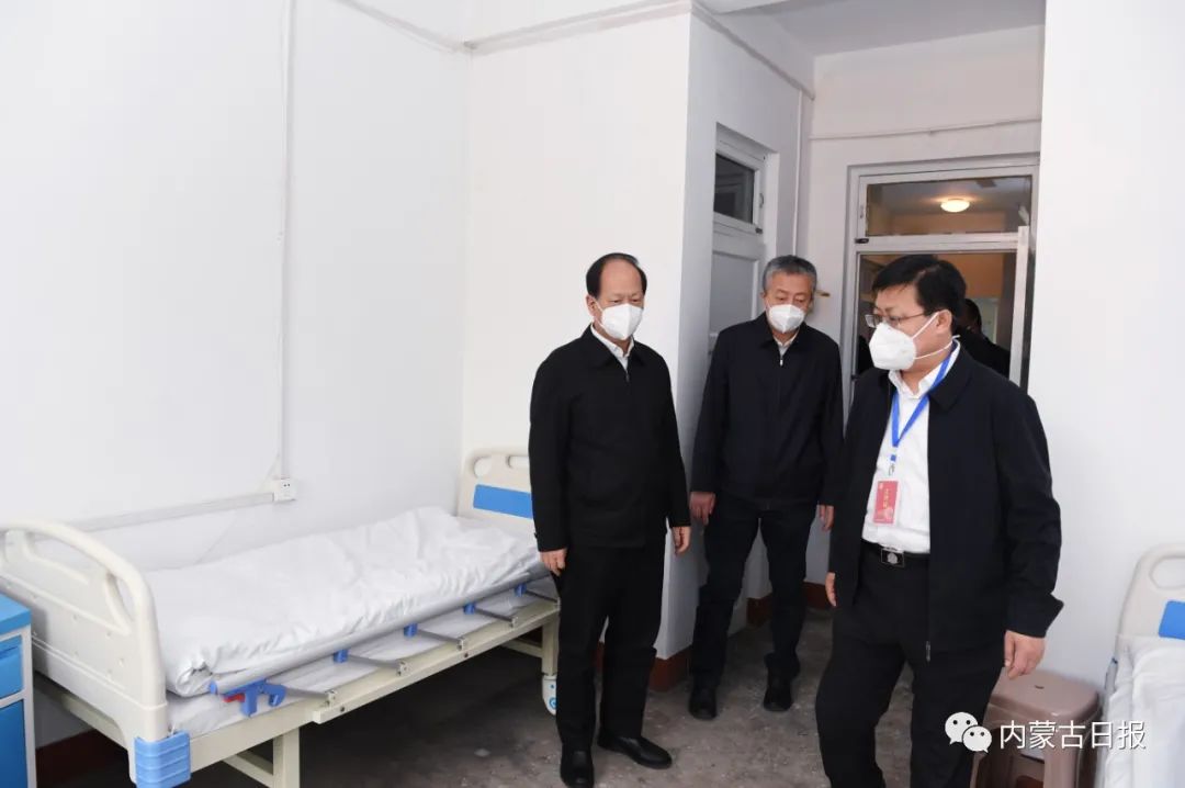 4月26日,自治区党委书记、人大常委会主任石泰峰在包头市方舱医院考察。记者 袁永红 摄
