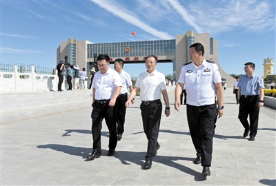 八月十三日,自治区党委书记孙绍骋在二连浩特口岸考察口岸建设和运行情况。本报记者 马建荃 摄