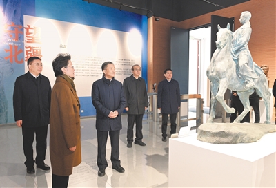 11月15日,自治区党委书记孙绍骋在呼和浩特雕塑艺术馆参观“守望北疆”主题雕塑展。本报记者 马建荃 摄