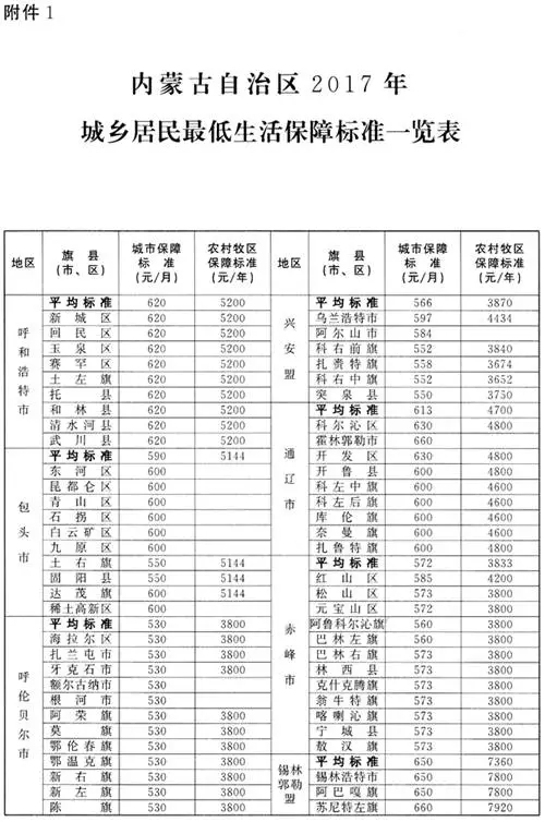 坚持守住民生底线,保证困难群众基本生活,是贯彻落实党的十八大和十八届三中、四中、五中、六中全会精神及自治区第十次党代会精神的重要举措。全面落实好社会救助政策,对于更好地保障困难群众基本生存权利,着力实现依法救助、精准救助、综合救助,确保打赢脱贫攻坚战,全面建成小康社会具有重要意义。经自治区人民政府同意,现就2017年全区社会救助标准有关事宜通知如下: