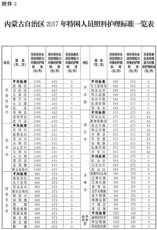 关于2017年全区社会救助标准有关事宜的通知