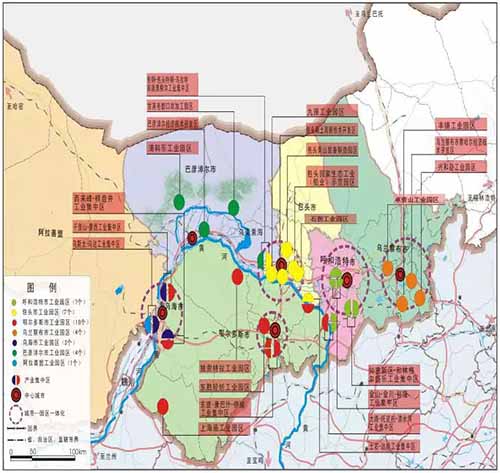 附图1:内蒙古西部经济区工业集中区和重点工业园区规划布局