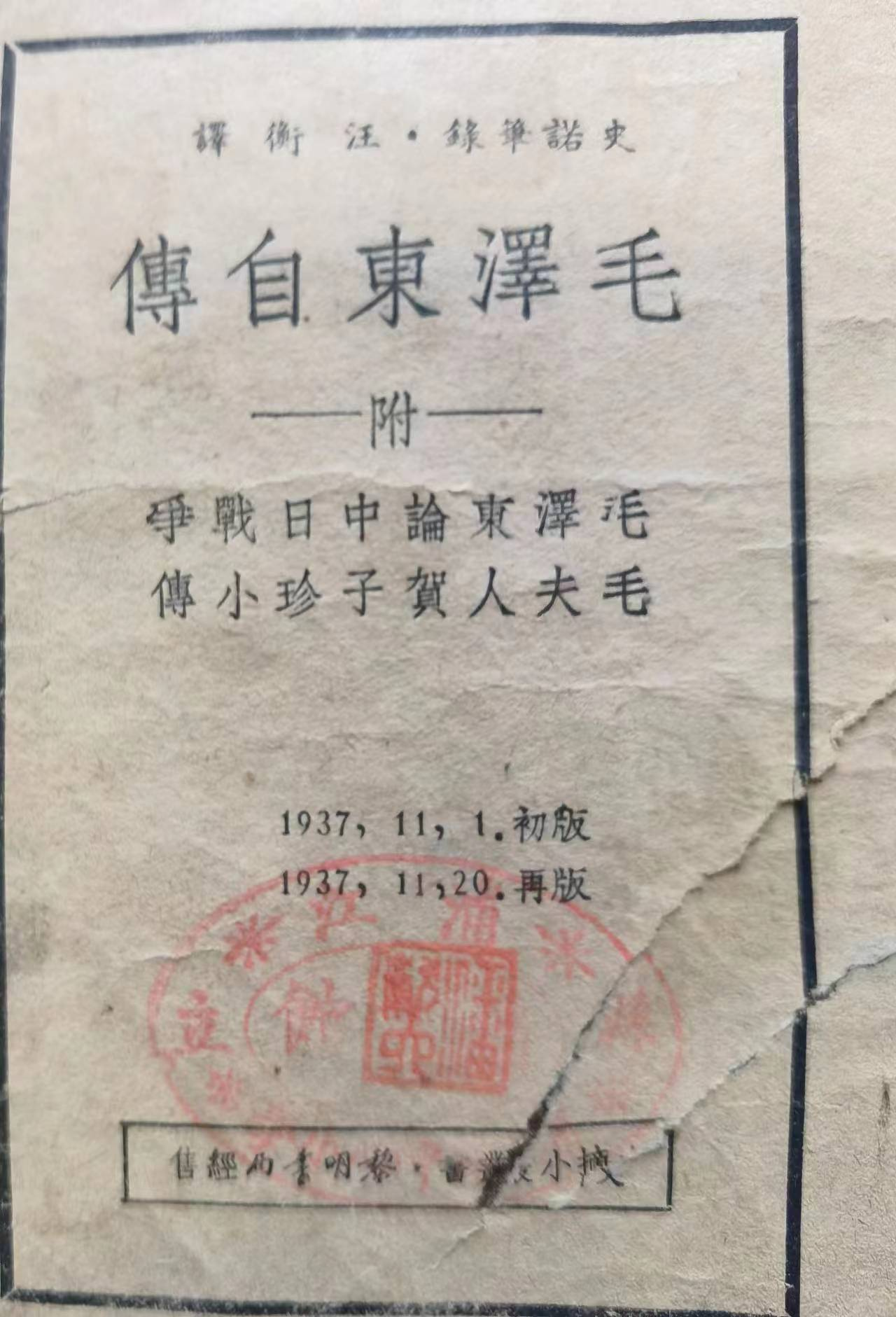 (徐汉松同志捐赠的《毛泽东自传》书影)